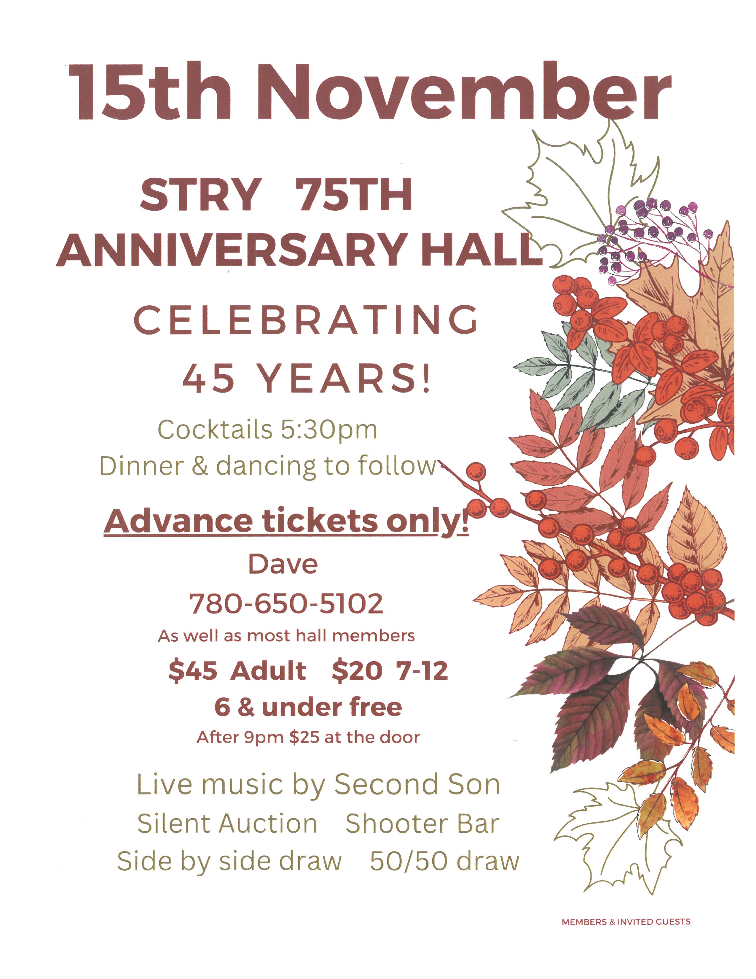 Stry Hall Dinner & Dance When: Saturday, November 15, 2025 at 5:30 PM Community Dinner and Dance See poster for details and how to get tickets Stry Hall Dinner & Dance